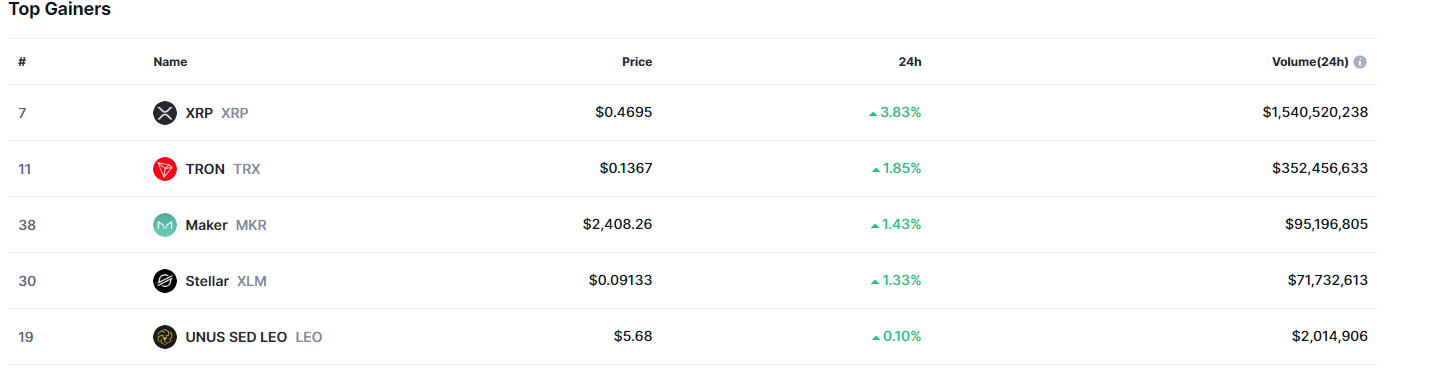 While the color red generally dominates the altcoin market, XRP ranked first among the altcoins that experienced an increase.
